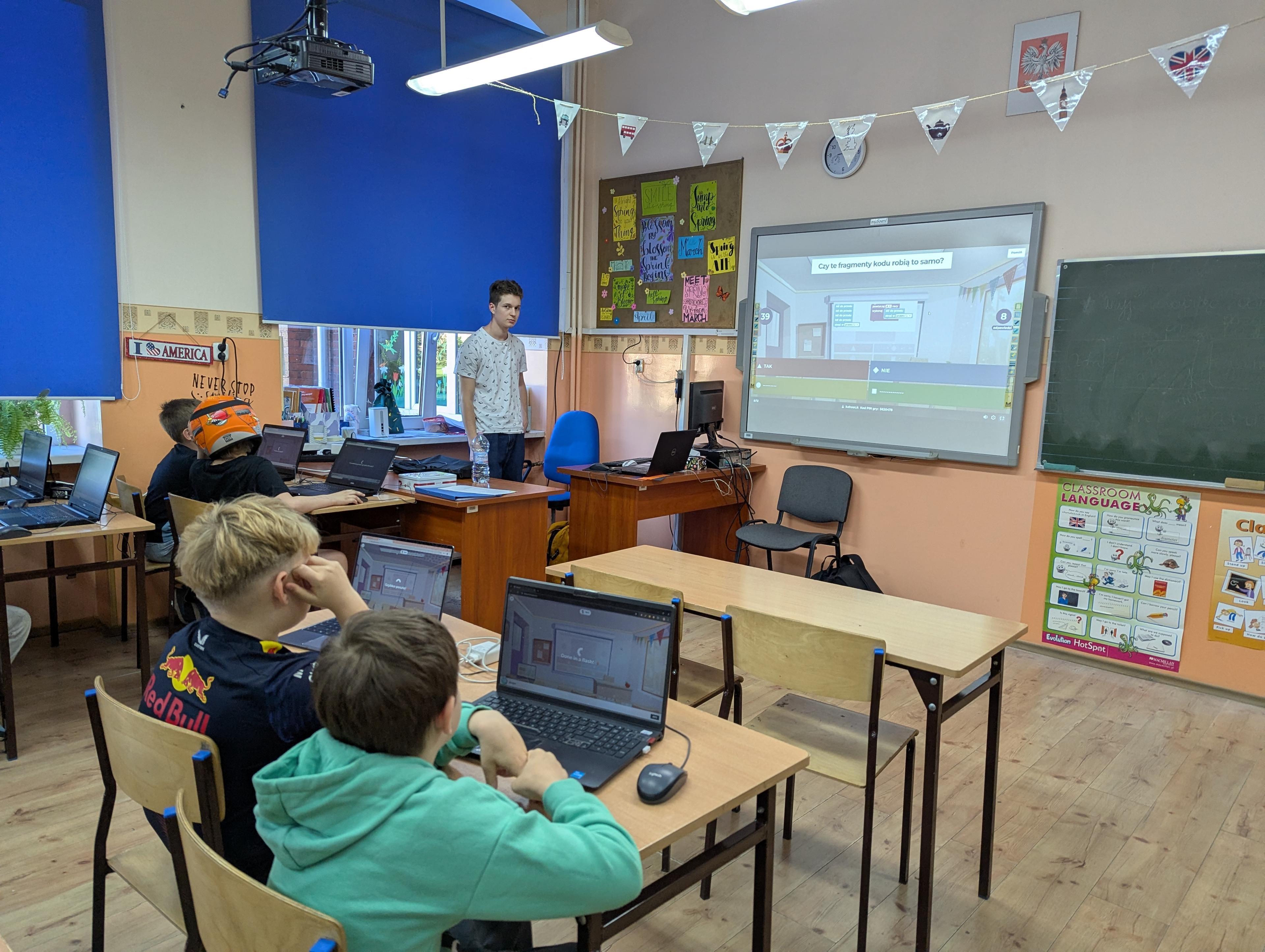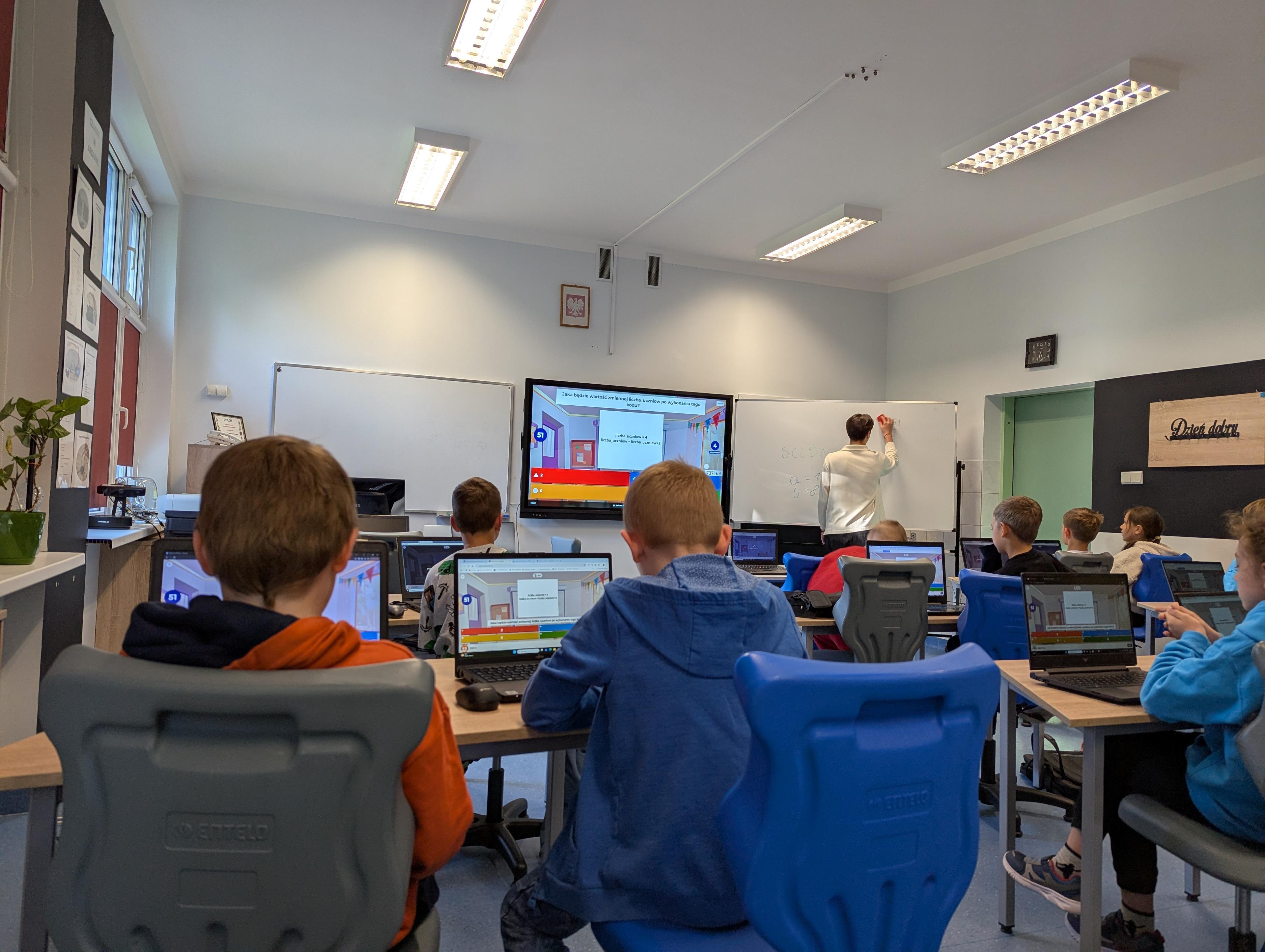 Jedna lekcja trwa 55 minut. Pracujemy w małych grupach i stawiamy na praktykę - dzieci dużo tworzą i testują.